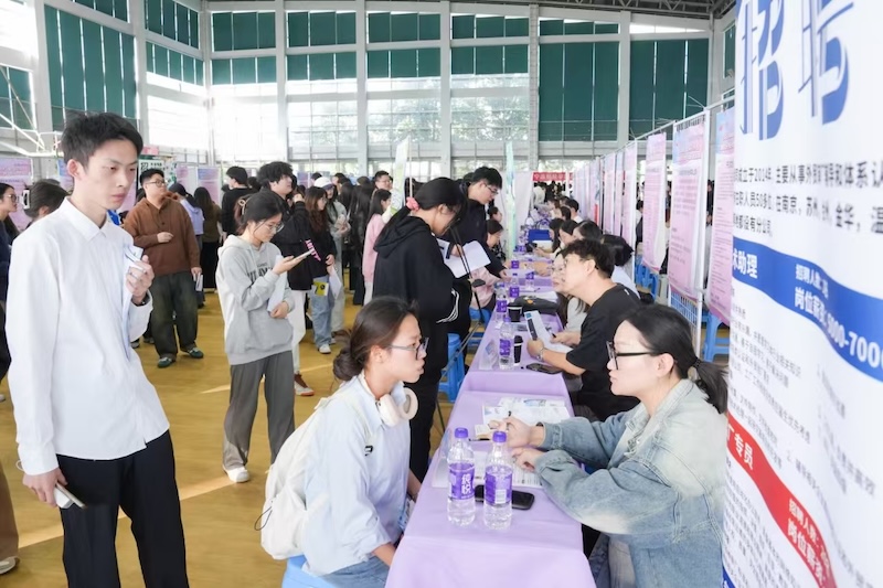 10月24日下午,宁波财经学院体育馆内人声鼎沸,该校2024年秋季首场综合性招聘会正在这里举行。
