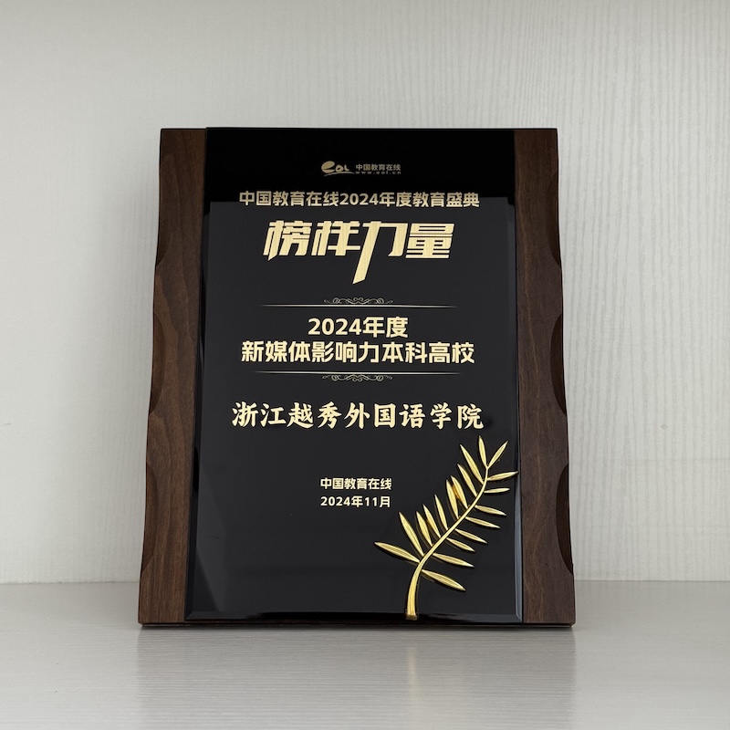 近日,金宝搏188入口 “榜样力量·2024年度教育盛典”优秀案例公布。浙江越秀外国语学院凭借在新媒体领域的卓越成就与深远影响力,荣获“2024年度新媒体影响力本科高校”。
