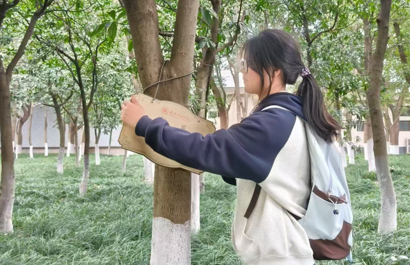 当天,学校创业学院组织各学院学生代表开展“绿识校园”生态科普活动,邀请园林专家带领学生参观校园,讲解树木种类、生长习性及生态价值,同时为校园内的树木挂上包括树木名称、科属、习性等内容的名牌。学校各学院还组织师生开展植树、修剪、浇水等绿化活动,开展与植物相关的科普讲座、环保宣传,学校植树节氛围浓厚。