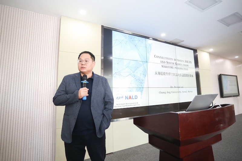 韩国中央大学东北亚物流流通研究院院长赖柏霖从海运视角探讨了韩国与东盟国家(尤其是泰国)的物流连通性及其对区域经济发展的影响,并结合韩国航运公司的港口选择策略分析东南亚港口的优化路径。
