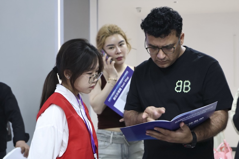 活动现场,30余名境外采购商,与80多家台州本土企业开展深度洽谈。学生党员陪同外商按照位置编号就座,通过一对一的形式,为采购商及供应商双方提供精准的翻译服务。在翻译过程中,每一个细节都可能影响合作,学生党员充分考虑文化差异,兼顾语言表达与文化适配,不仅为外商解读产品参数、行业标准,更深入传递中国品牌的创新理念与文化内涵。