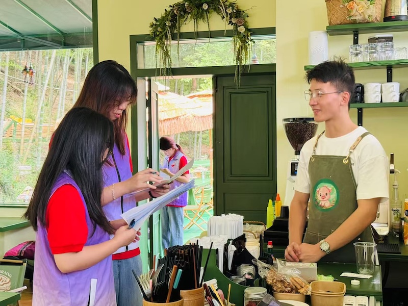 走街串巷做测量、采数据,与村民拉着家长里短做访谈调研,了解村庄发展需求要点痛点,团队成员们兵分多路扑到基层一线,展现巾帼风采,不仅重点调研了“我家门外桃源·咖啡”“猪圈咖啡”等当地特色业态,对其环境特征、商业模式作了专业细致分析,还与乡村相关产业主理人就店铺理念、目标客群、环境特色、运营目标等核心问题进行了访谈交流,通过多维度考察梳理实际需求。