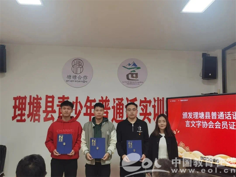 9月10日教师节这天,理塘县普通话语言文字协会常务副会长卓玛曲珍为金老师颁发了协会会员证,金老师表示:“推广普通话是一项艰巨而长远的任务,能够为理塘县推广普通话的工作奉献出自己的绵薄之力感到非常开心。”金老师还充分发挥支教教师先锋模范作用,积极参与钱塘驻理塘工作队组织的系列活动,他参与了理塘县三中校园卫生打扫、骡子沟小学欢庆中秋和公益捐赠活动以及迎亚运开幕活动,参与浙江援建的理塘县各类民生产业项目参观学习等活动。他以实际行动践行着支教教师的模范带头作用及浙川跨越山海的情谊,促进了民族大团结,“塘塘合作”大发展。