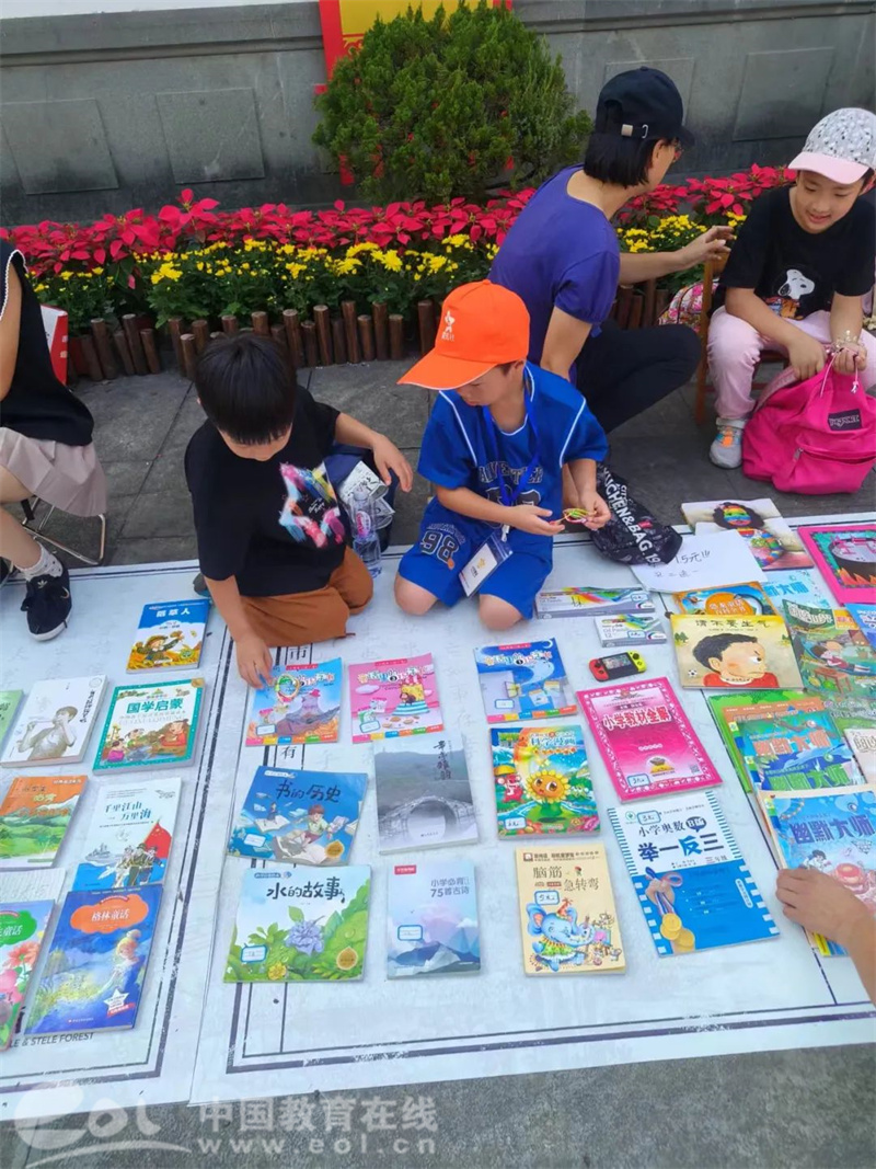 一到孔庙广场,我们就看到很多家长和小学生们在摆摊。各种商品琳琅满目,让人目不暇接,当然其中最主要的是图书,还有个别小学生四处走动拉拢顾客的。此情此景,让我们跃跃欲试。
