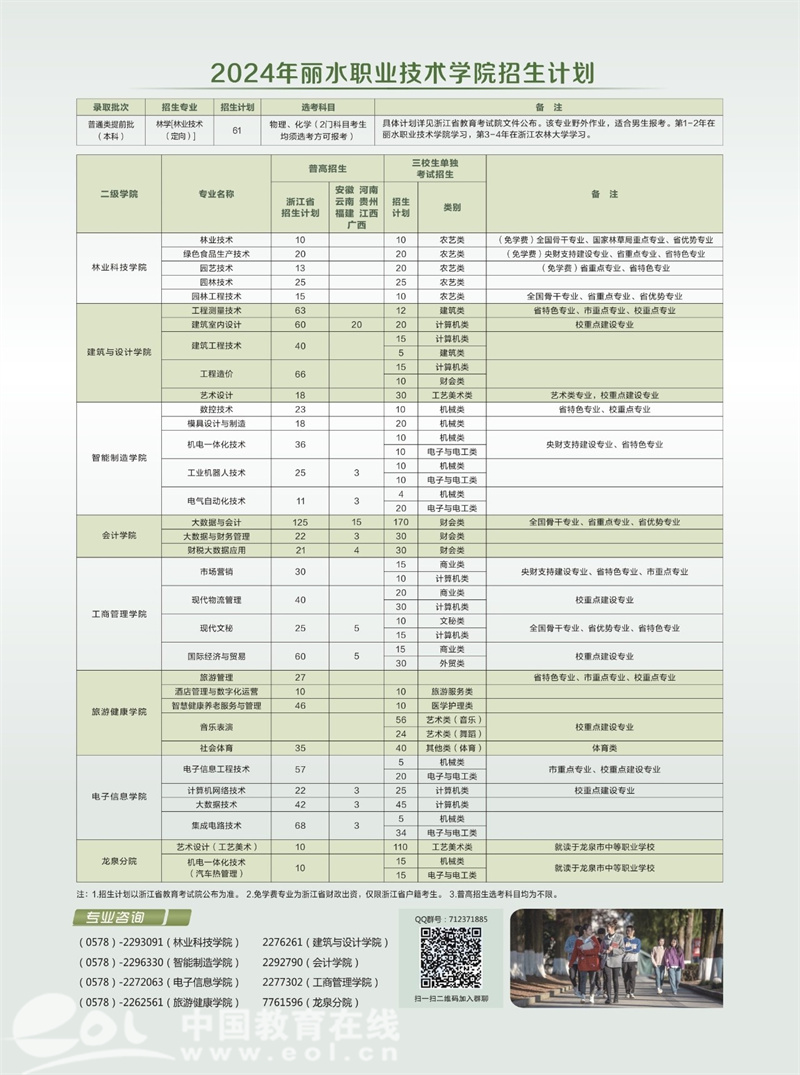 另外,今年学校和浙江农林大学合作的林学(林业技术)本科定向生提前批招生计划61名,考生需要注意的是,选科由原来的物化生三门任选一科改为物理化学两科必选方可报名。